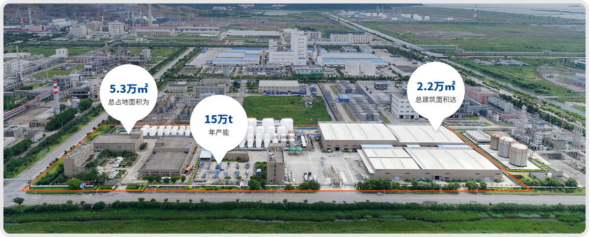 Meihe Technology Factory is located in Zhuhai Gaolan Port Petrochemical Zone, with a total area of 53,000 square meters, a total construction area of 22,000 square meters, and an annual production capacity of 150,000 tons.